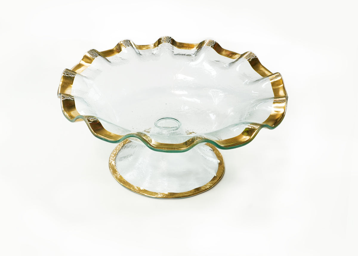 The ultimate in luxury, to celebrate our 40th Annie-versary we are bringing back a favorite. This footed serving bowl features a delicate, undulating 24K gold trim that adds a touch of sophistication and uniqueness to each piece. Perfect for salads and pasta entrees. Turn your next meal into a celebration with its dazzling presence!