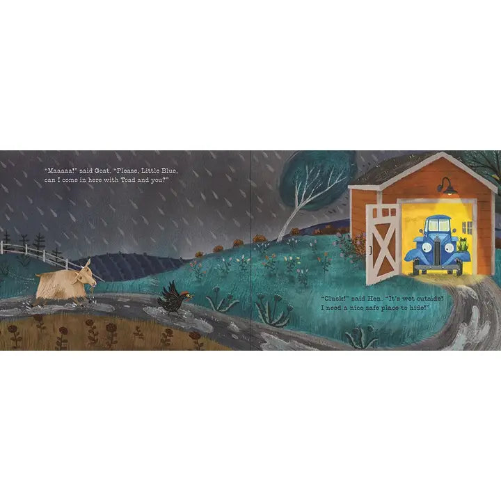 Say good night with Little Blue Truck and friends as they prepare for bed in this #1 New York Times bestseller! Beep! Beep! Beep! It’s time for sleep. A storm is brewing and Little Blue Truck and his good friend Toad are hurrying home for bed. But who can sleep with all that racket? It’s not long before other friends show up seeking safety from the storm. Thunder and lightning sure can be scary, but it’s easy to be brave together. When the clouds roll on and the sky is clear, it’s all aboard for a bedtime ride! Beep! Beep! Shhh . . . Don't miss Blue's trip to the city in Little Blue Truck Leads the Way.