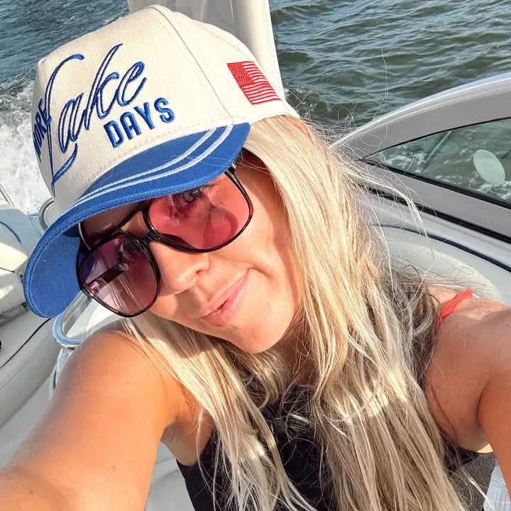 Going to definitely be a best seller! The perfect hat for hot summer days on the lake, Memorial Day, 4th of July and more! Royal Blue Vintage hat, with side embroidery and stripes on the bill!