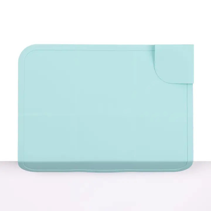 Introducing the first-of-its-kind foldable placemat with Table Guard technology. With a 2” flap to cover the front of the eating surface, this generously sized placemat keeps the entire eating area both clean and protected. Our nonslip silicone placemat was designed for on-the-go and at home. The compact and portable design is perfect for traveling, restaurants, or visiting friends and family.. Offered in our 10 signature colors that coordinate perfectly with our entire feeding collection. -Size: 15” x 12” -Non Toxic, Food Grade Silicone -FDA Approved, CPSIA Compliant -Free of BPA, PVC, Phthalates -Easy to clean: wipe clean with soap and water. Dishwasher safe.