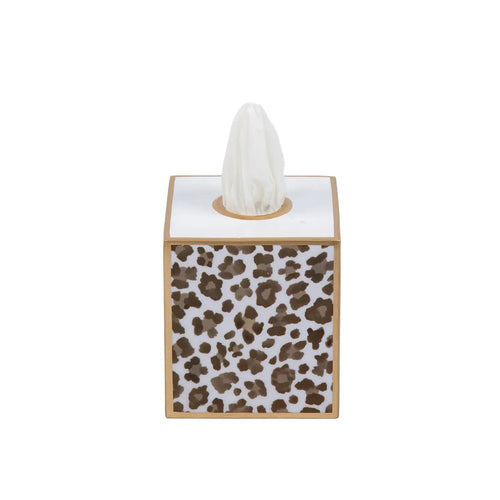 Cream Leopard Enameled Tissue Box Cover