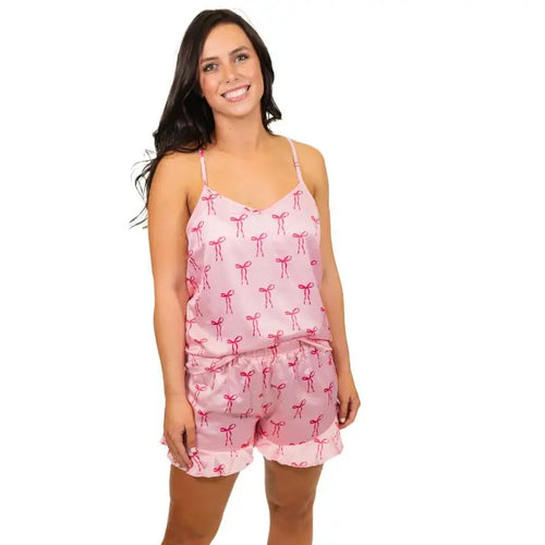 Tied with A Bow Satin Pajama Tank Set