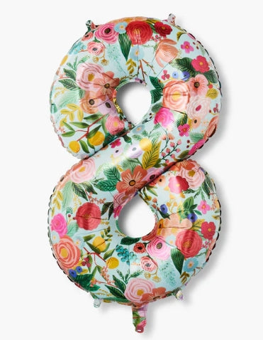 Celebrate a milestone with our Garden Party number foil balloons, available in numbers 0-9. Each balloon is approximately 40 inches tall.