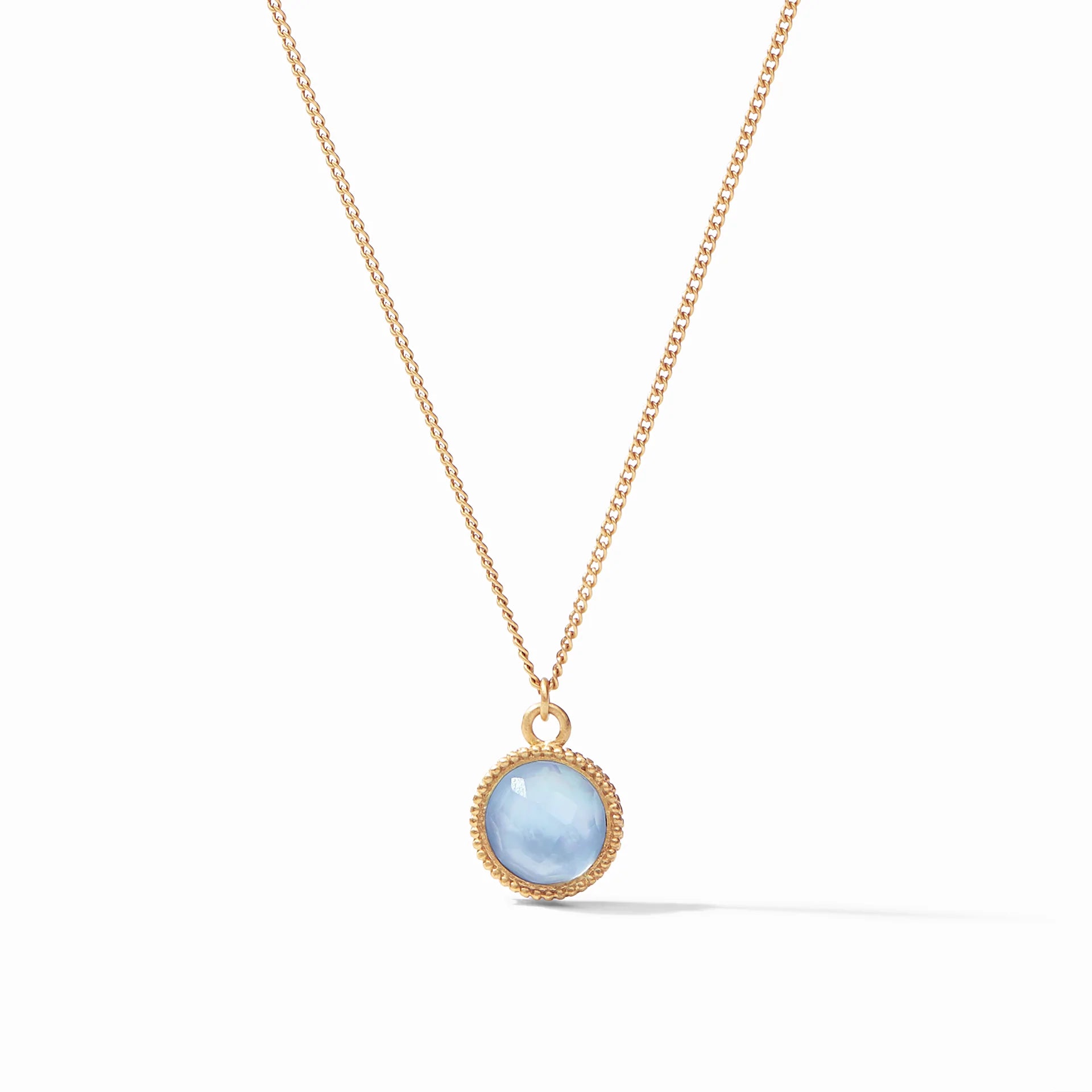Julie Vos Fleur De Lis Solitaire Necklace Gold Iridescent Chalcedony Blue Reversible.