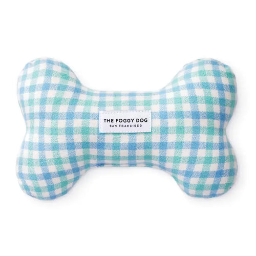 Cornflower Gingham Flannel Easter Dog Bone Squeaky Toy