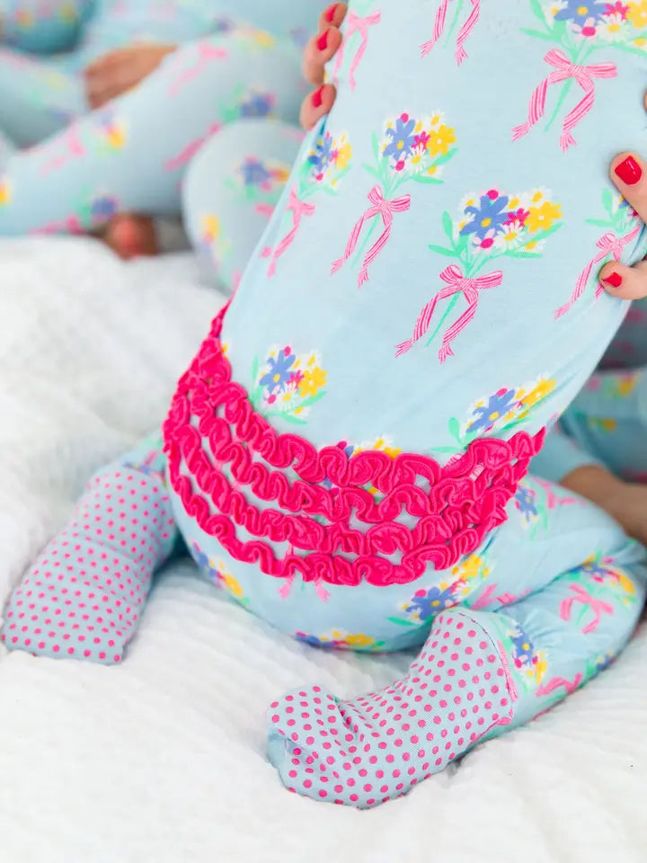 Baby Girls Bows and Bouquets Bamboo Viscose Footed Ruffle One Piece Pajama
