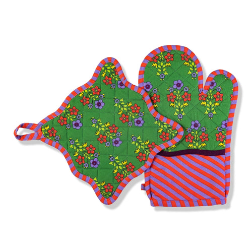Green Pot Holder & Oven Mitt