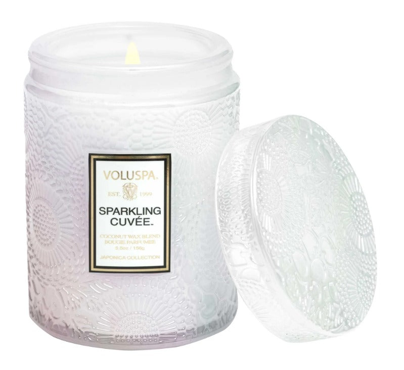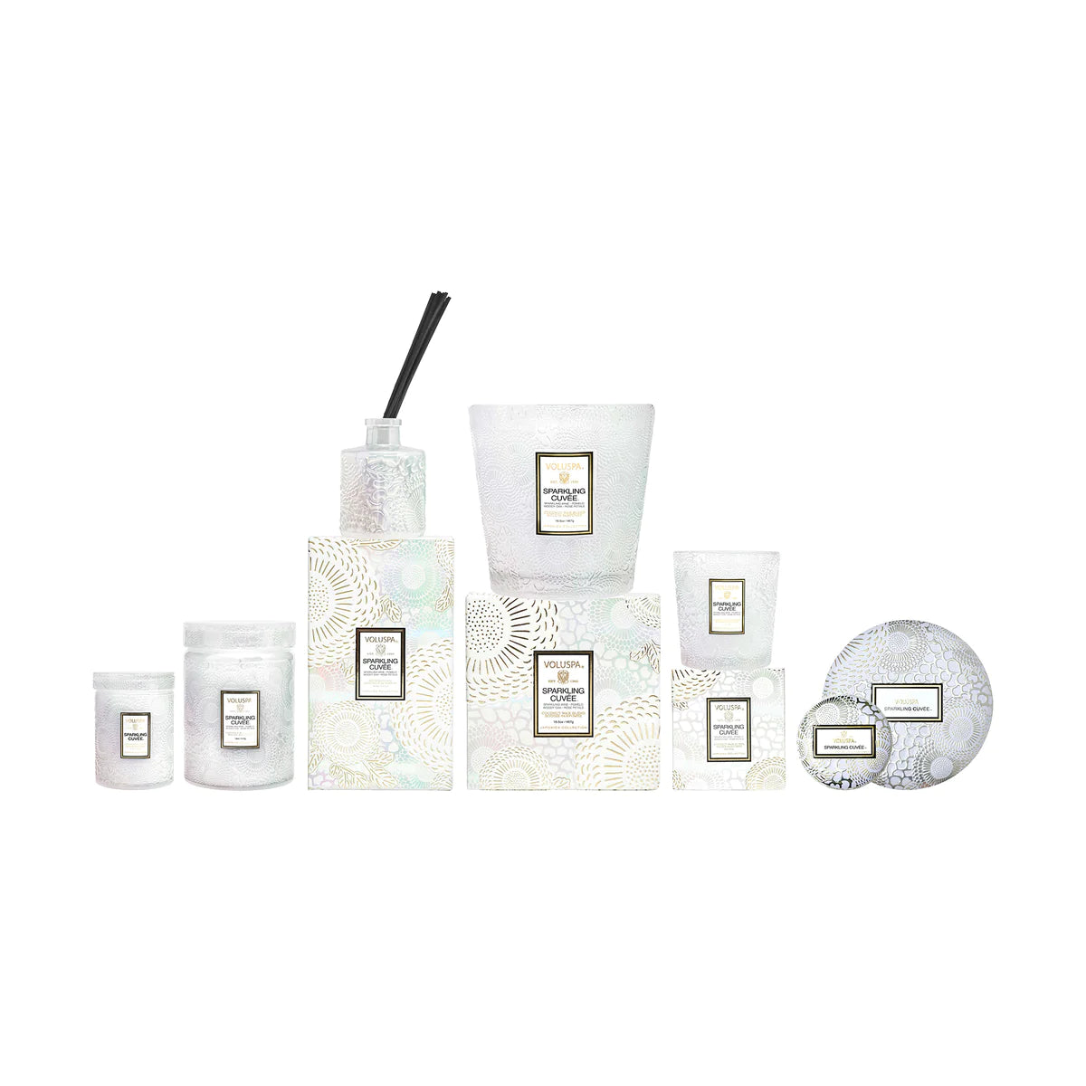 Pop a bottle of Voluspa’s finest blend, it’s time to celebrate! A mix of beautiful aromatic complexity, Sparkling Cuvée opens with vivacious fruit tones of Sparkling Wine, Pomelo and Red Currant. The effervescence of Sparkling Wine is the heart of the celebration, with bubbles cascading to the surface, dancing and mingling with juicy Nectarine and Bulgarian Rose Petals. A velvety, smooth finish of Woody Oak serves as the perfect stage for this aromatic affair. Raise a glass of Sparkling Cuvée, your olfactory aperitif for every unforgettable occasion.